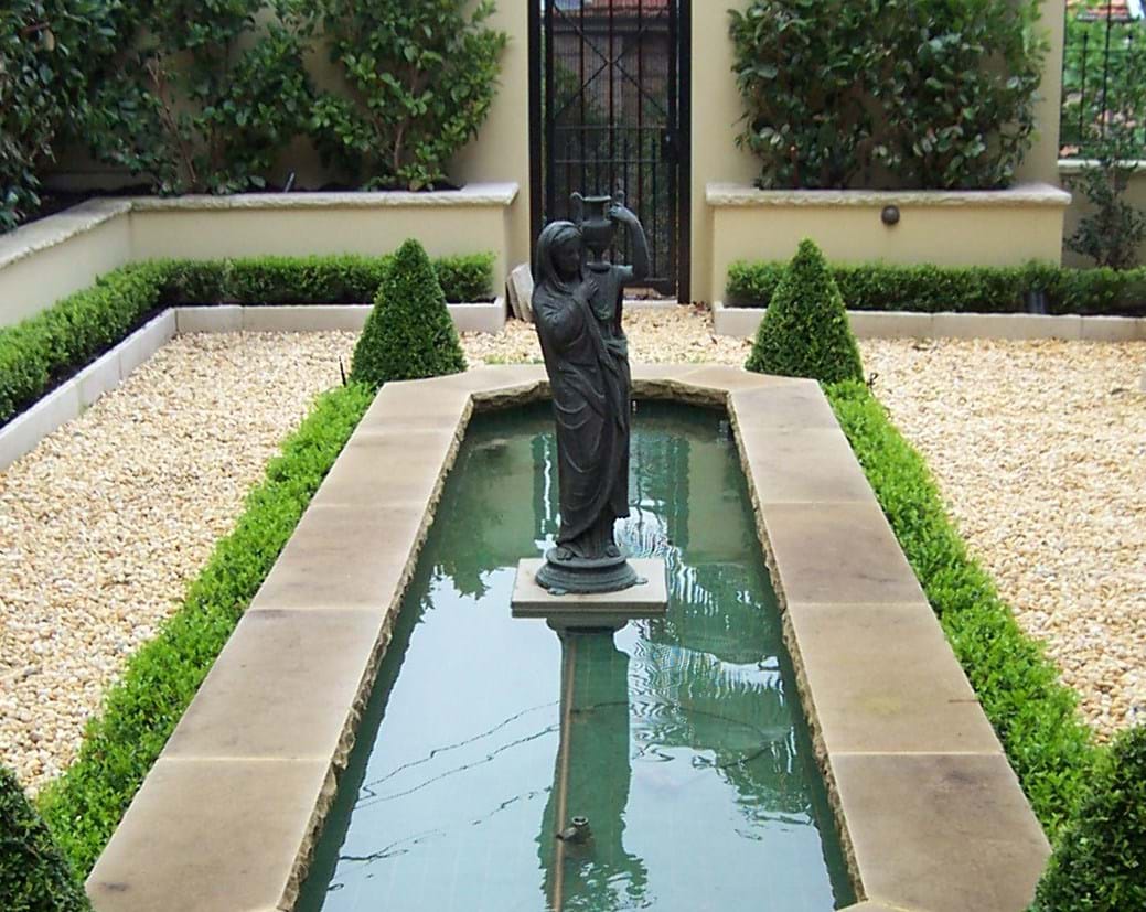 Bronze Figure in Formal Pond